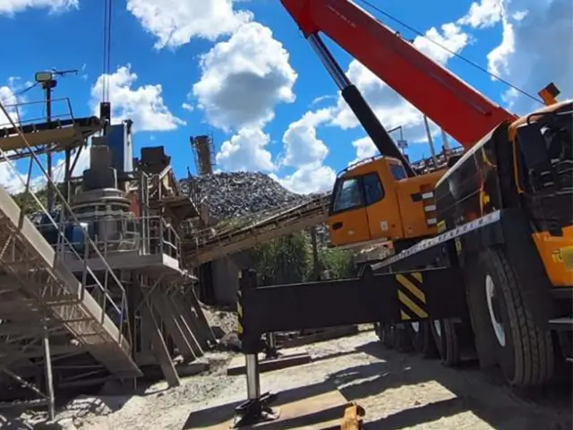 Durante paradas de manutenção, é comum a necessidade de remover a parte superior ou o conjunto de alimentação do britador. Com o guindaste, essa tarefa é feita com segurança, reduzindo o tempo de inatividade e evitando danos às peças.