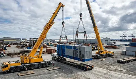 Transbordo de cargas, descida de geradores e posicionamento de transformadores.